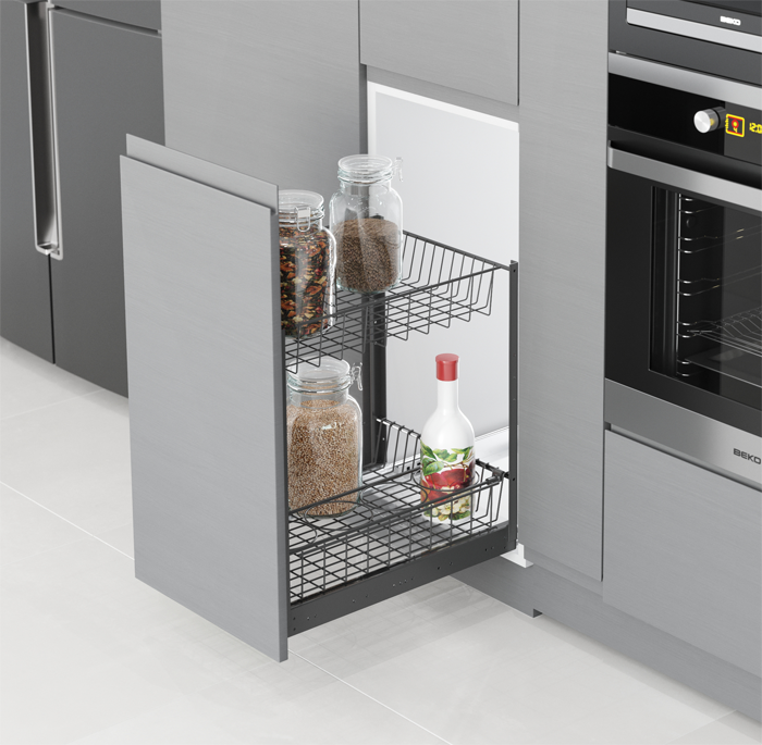 • La capacité de charge est de 30 kg. • Une fermeture lente et silencieuse est utilisé. • Peut être monté sur le panneau droit ou gauche du module.